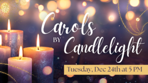 Church family, join us on December 24th for our final Christmas event of the season: Carols by Candlelight. This intimate service is the perfect way to pause before the busyness of Christmas Day. Take a moment to quiet your heart, worship the Lord, and praise Him for sending Jesus to be born and to die for us. He is truly worthy of our worship! Let’s come together as a church family to celebrate the true reason for the season—Jesus Christ!