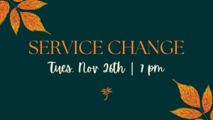 During Thanksgiving week, we will be holding our midweek service on Tuesday, November 26th. Join us for a special time of worship as we come together to give thanks and praise God for His faithfulness!